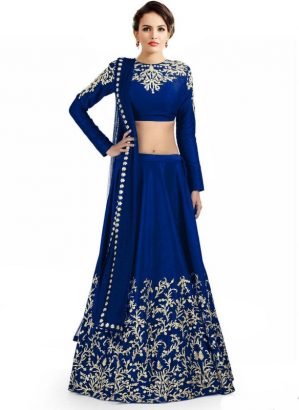 Embroidered Lehenga, Choli and Dupatta Set in Blue
