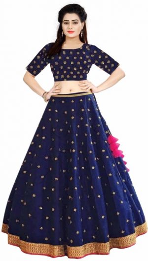 Embroidered Semi Stitched Lehenga, Choli and Dupatta Set in Blue