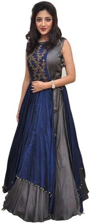 Embroidered, Embellished Semi Stitched Lehenga Choli in Grey and Dark Blue