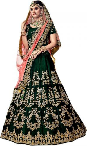Shree Impex Embroidered Semi Stitched Dark Green Lehenga, Choli and Dupatta Set