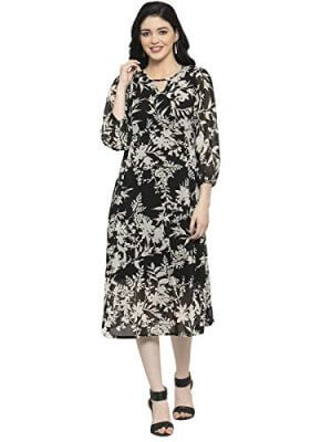 Harpa Women’S Polyester A-Line Midi Dress At Cheap Price In India
