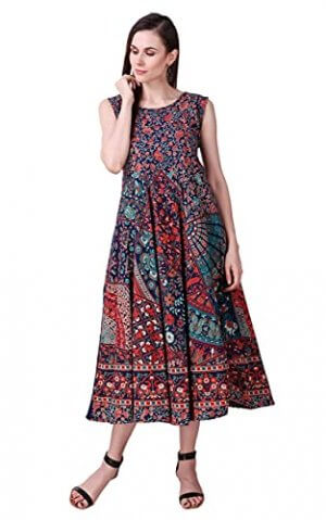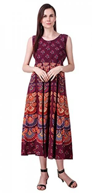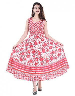 UNIBLISS Women’s Cotton Rajasthani Jaipuri Traditional Printed Kurti Long Midi Maxi Dress – Multi5 at Discount Price in India