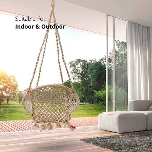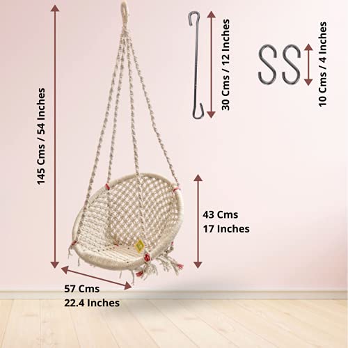 Specification: Curio Centre Make in India Round Cotton Home Swing & Hammock Chair with Accessories (145 cm X 57 cm X 43 cm, White, 100 kgs Capacity) at Sale Price in India