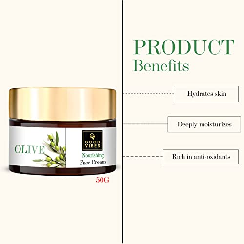 Good Vibes Olive Nourishing Face Cream – 50 g – Skin Brightening and Anti Ageing for Dry, Rough and Dull Skin – Paraben and Mineral Oil Free at Cheap Price in India