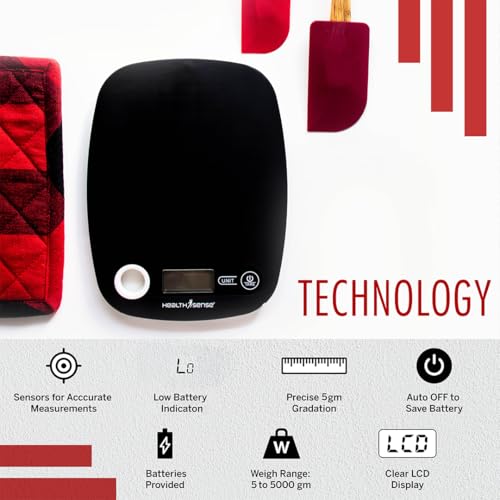HealthSense Chef-Mate KS 40 Digital Kitchen Weighing Scale & Food Weight Machine for Health, Fitness, Home Baking & Cooking, 1 Year Warranty & Battery Included (Black) at Discount Price in India Prices