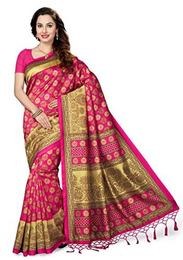 Ishin Printed Bhagalpuri Art Silk Saree in Pink Prices
