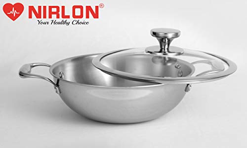 Specification: NIRLON Platinum Triply Stainless Steel Deep Kadhai with Glass Lid, Silver 24 cm – 3 Liter (Induction and Gas Stove Compatible) at Discount Price in India
