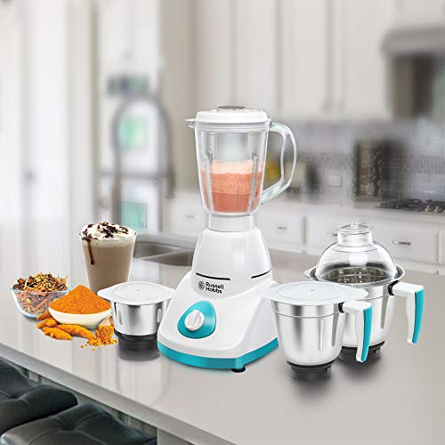 Russell Hobbs Livia750 (750 Watt) Full Copper Motor Mixer Grinder with 3 Stainless Steel Jar + 1 Juicer Jar (White) at Sale Price in India Prices
