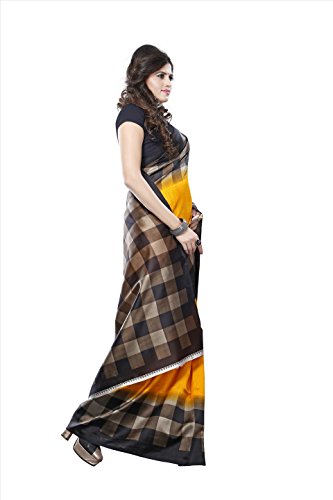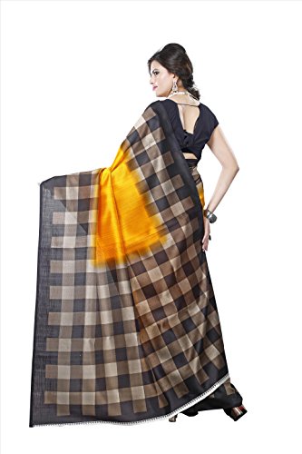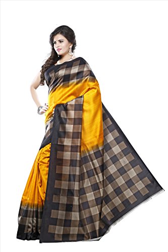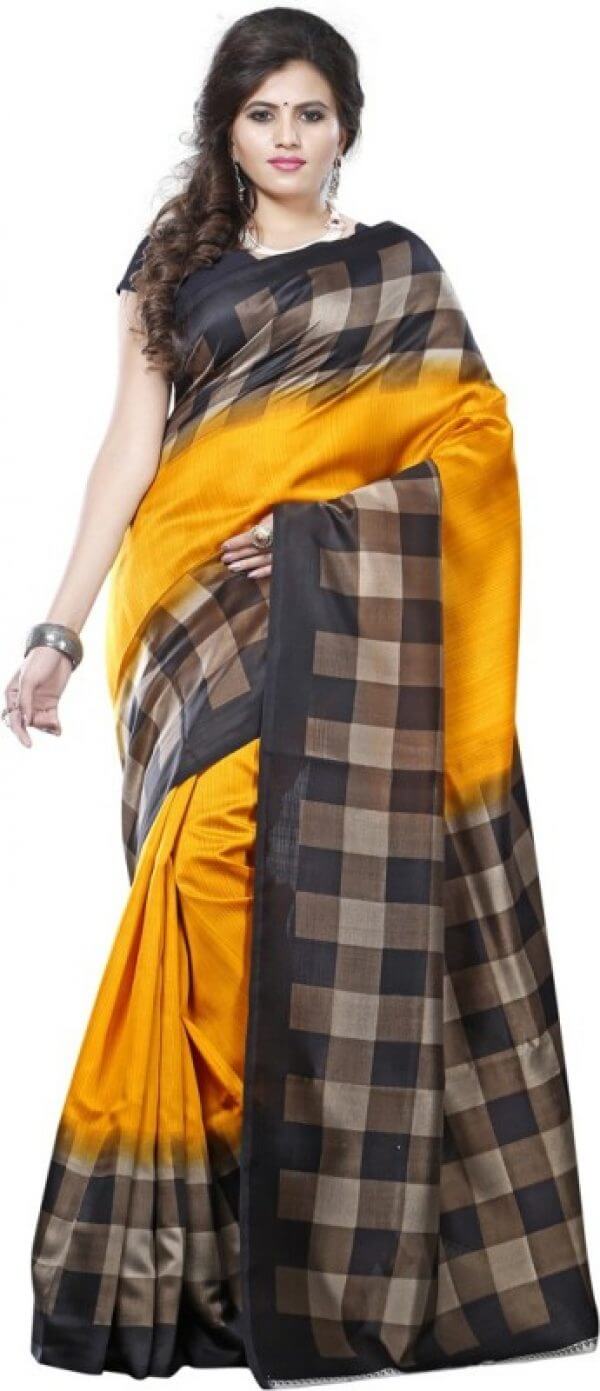 | Title | Fabwomen Sarees Checkered Print Yellow And Black Coloured Kalamkari Art Silk Traditional Casualwear Women's Saree/Sari. |