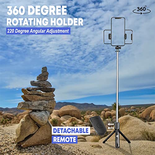Tygot Bluetooth Extendable Selfie Sticks with Wireless Remote and Tripod Stand, 3-in-1 Multifunctional Selfie Stick with Tripod Stand Compatible with iPhone/OnePlus/Samsung/Oppo/Vivo and All Phones at Sale Price in India