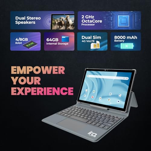 Wishtel IRA Duo+ 10.1 inch 1080p Full HD, Tablet with Keyboard (RAM 4GB, ROM 64GB, WiFi + 4G Volte) Grey. at Cheap Price in India Prices